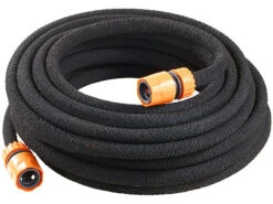 Royal Gardineer Rieselschlauch:Perlschlauch Rund, 12 M, Mit Schnellanschluss & Befestigungshaken
