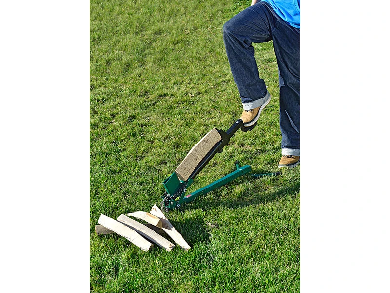 Schonen Sie Ihren Rücken: Legen Sie das Spaltholz ein und drücken Sie mit dem Fuß das Trittbrett runter. Kinderleicht und ohne großen Aufwand!