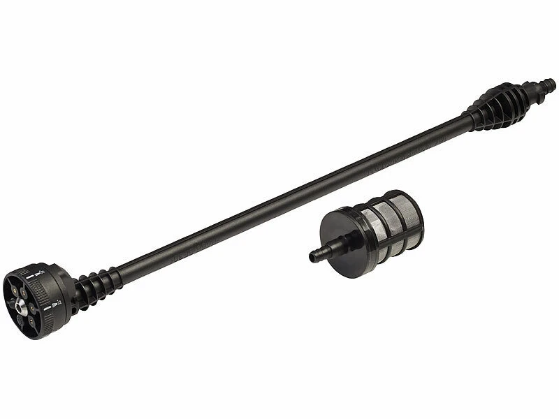 - Schlauchfilter: schützt den Druckreiniger vor Schmutzteilchen aus verunreinigtem Wasser