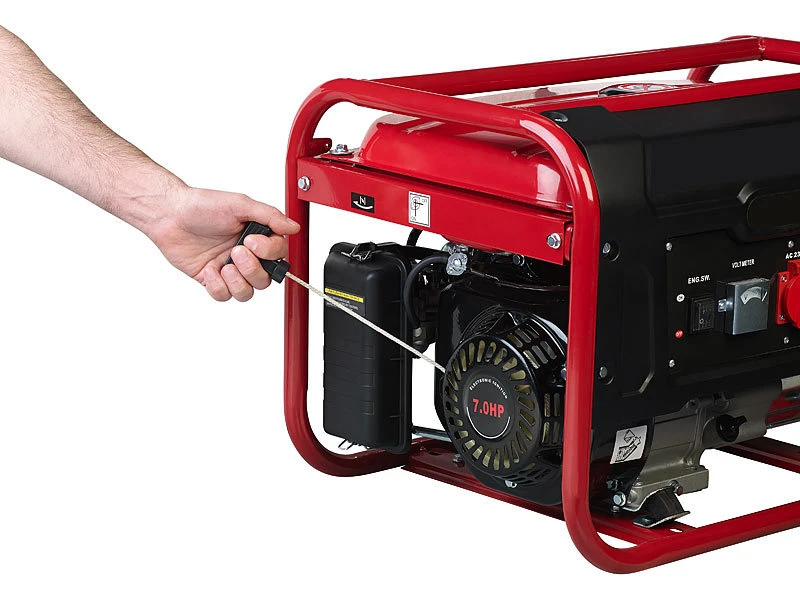 Einfacher Betrieb: Füllen Sie Benzin und Motoröl in Ihren Generator ein, betätigen Sie den Zugstarter und schon kann es losgehen. Der leistungsstarke 4-Takt-Motor ist auch eine ideale Strom-Versorgung für Notfälle!