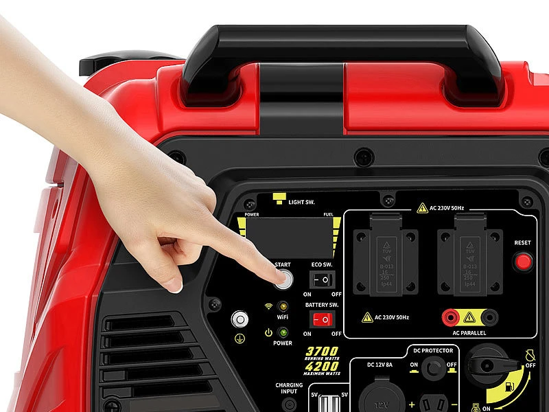 Einfacher Betrieb: Füllen Sie Benzin und Motoröl in Ihren Generator und schon kann es losgehen! Den Generator starten Sie per Zugstarter oder per Elektro-Startknopf. Das macht die Verwendung auch für ältere Benutzer angenehm komfortabel.