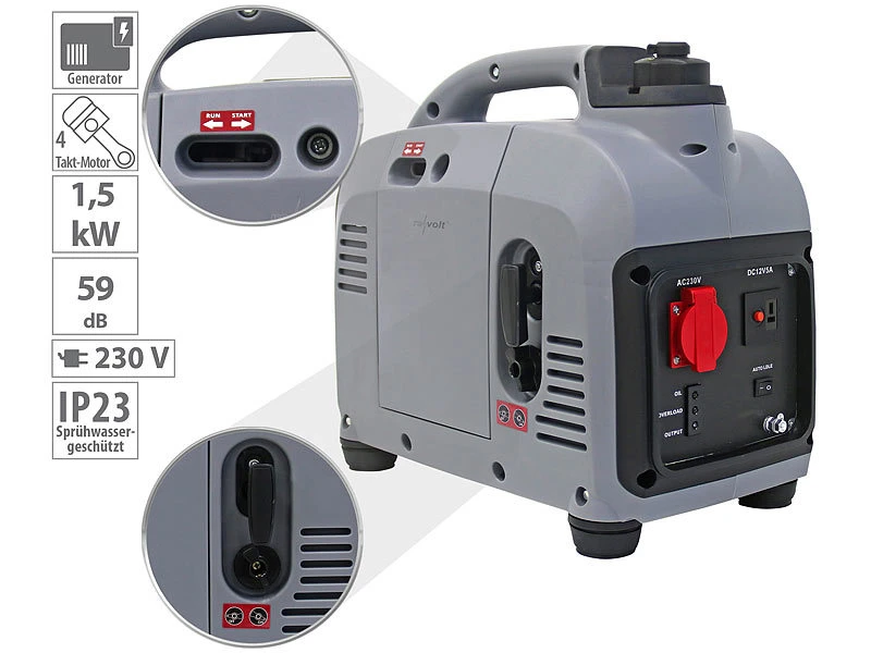 - Generator BIG-115 inklusive ĂlbehĂ€lter, Schraubenzieher, GabelschlĂŒssel, ZĂŒndkerzenschlĂŒssel, ĂberbrĂŒckungskabel und deutscher Anleitung – Power Inverter – AuĂerdem relevant oder passend zu: Notfall, Notstrom, invertiert, Wechselrichter