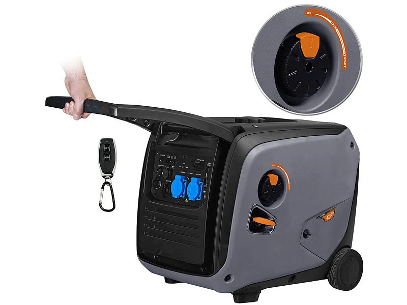 Einfacher Betrieb: Füllen Sie Benzin und Motoröl in Ihren Generator und schon kann es losgehen! Den Generator starten Sie klassisch per Zugstarter oder ganz bequem per Elektro-Starter oder Fernbedienung.