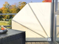 Dieser Riesen-Fächer spendet Schatten ohne im Weg zu stehen! So passt er perfekt auf Ihren Balkon: Montieren Sie ihn einfach an der Mauer und schon haben Sie eine ausklappbare Wand.