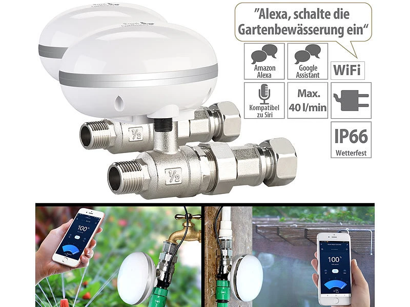- Kompatibel mit Amazon Alexa und Google Assistant: Bewässerung per Amazon Echo, Google Home und kompatiblen Lautsprechern per Sprachbefehl starten und stoppen