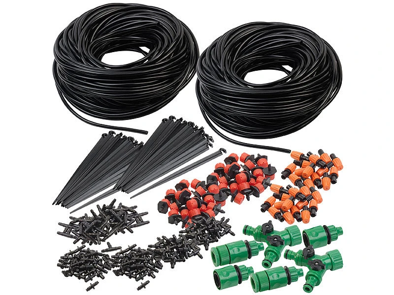 - PVC-Schlauch inklusive 2 Teflonbändern, 2 Wasserhahn-Anschlüssen, 2 2-Wege-Schlauchverzweiger, 4 Schlauch-Schnellverbindungen, 30 Zerstäuber-Spitzen, 50 T-Verbindungsstücke, 30 kleine T-Verbindungsstücke, 28 Spitzen-Verbindungsstücke, 44 Tropfer-Spitzen, 40 Erdspieße, 40 Sprinkler-Spitzen und deutscher Anleitung – Bewaesserung – Außerdem relevant oder passend zu: Topf, Blume, System, Spitzer, Schüssel, Beregnung, Micro Drip, Gewächshaus, Perlschlauch, Perlschläuche, Gartenschlauch