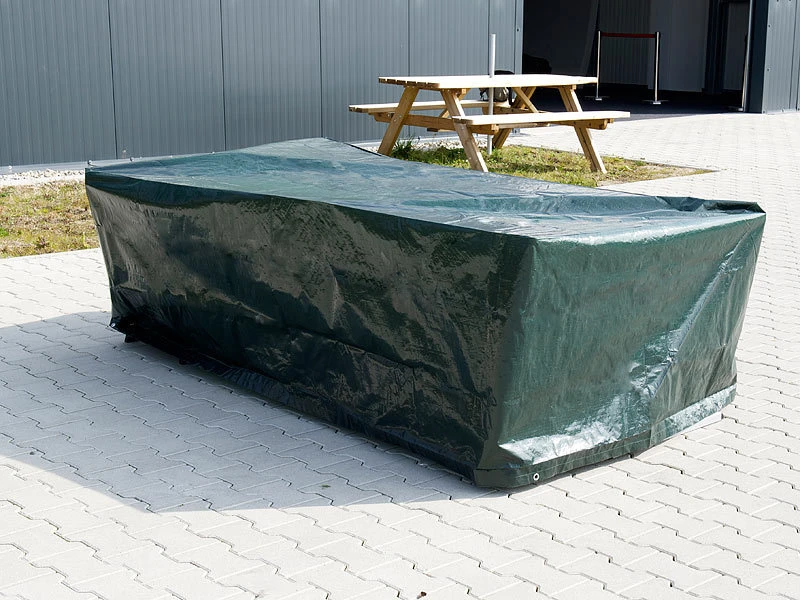 Lassen Sie Ihre Bierzelt-Garnitur auch im Winter draußen stehen: Die wetterfeste Abdeckung aus Polyethylen-Gewebe bewahrt Ihre Gartenmöbel sicher vor Umwelteinflüssen.