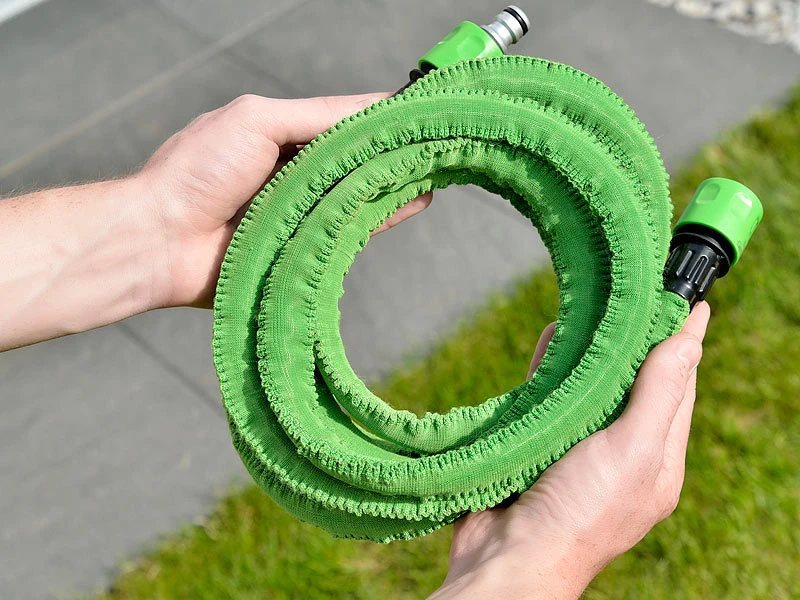- Latex-Gartenschlauch inklusive Adapter fĂĽr 3/4”-Wasserhahn und deutscher Anleitung – Dehnschlauch – AuĂźerdem relevant oder passend zu: kurz, Flex, Blume, Garten, dehnbar, 5 Meter, Terrasse, flexibel, Flexibler