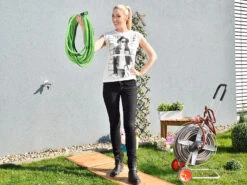 Er knickt nicht, verdreht sich nicht und verknotet nicht. Dank reißfestem Polyestermantel gleitet der Schlauch sicher und geschmeidig über Kanten und Steine. Ganz lässig gießen Sie damit Blumen und Bäume auch in über 7 Metern Entfernung.