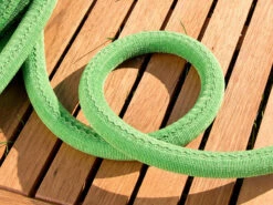 Er knickt nicht, verdreht sich nicht und verknotet nicht. Dank reißfestem Polyestermantel gleitet der Schlauch sicher und geschmeidig über Kanten und Steine. Ganz lässig gießen Sie damit Blumen und Bäume auch in über 50 Metern Entfernung.