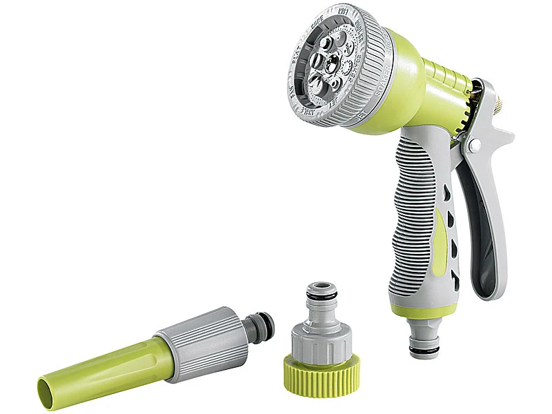 Die Multifunktions-Brause macht aus Ihrem Gartenschlauch eine praktische Spritz-Einheit mit 8 verschiedenen Einstellungen. Da ist von feinem Sprühnebel über flächendeckende Bewässerung bis zum präzisen Wasserstrahl alles dabei.