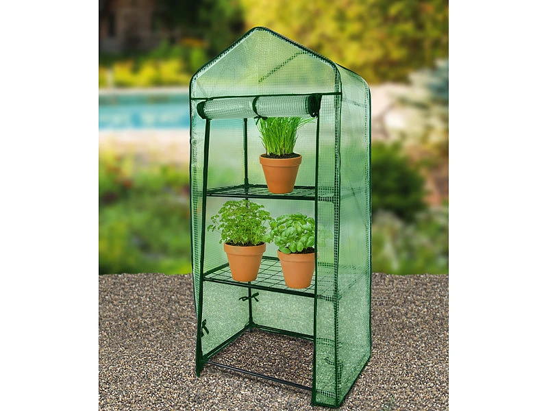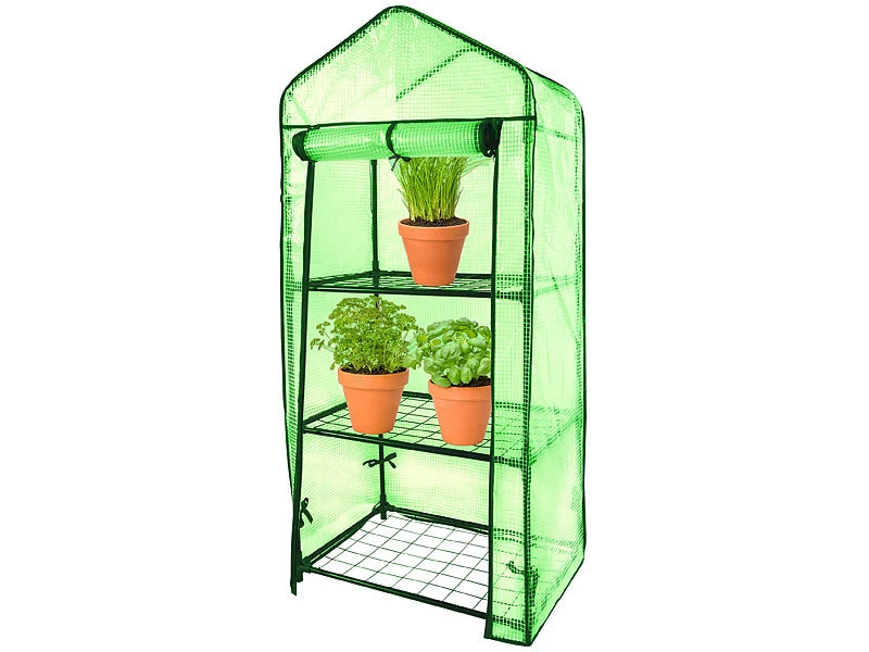 Schutz für zarte Pflänzchen: Jetzt müssen sich Ihre Setzlinge und Küchenkräuter nicht mehr vor Unwetter, Kälte und Schädlinge fürchten. Denn in Ihrem neuen Folien-Gewächshaus bewahren Sie sie sicher und warm auf. Dank der aufrollbaren Tür passen Sie das Treibhaus-Klima stets optimal an die Bedürfnisse Ihrer Pflanzen an.