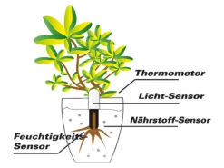 - Überwacht Lichteinfall, Temperatur, Feuchtigkeit und Nährstoff-Versorgung