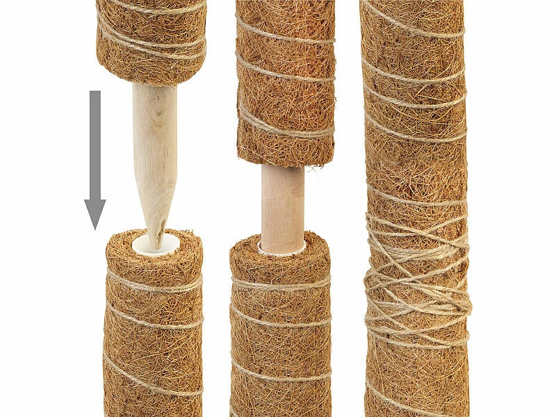 Kinderleichte Anwendung: Stecken Sie die angespitzten Holzstäbe einfach in die Erde. An der aufgerauten Oberfläche der Kokosfasern klettern Efeutute, Kletter-Philodendron & Co. ganz von selbst nach oben. Ihre Pflanzen wollen höher hinaus? Dann stecken Sie einfach zwei Pflanzstäbe ineinander und verdoppeln Sie so im Nu die Höhe.