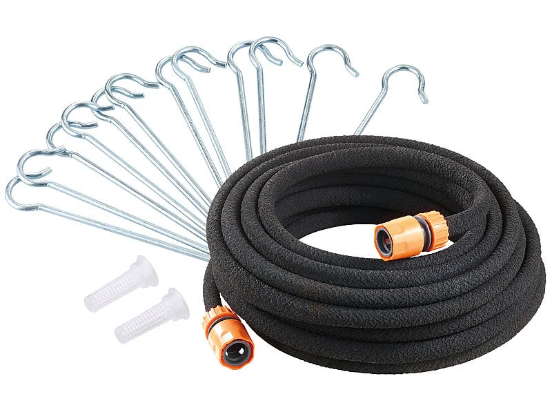 - Bewässerungsschlauch mit Verbindungsstücken und 12 Befestigungshaken