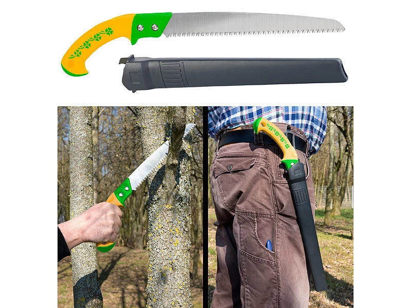 - Handsägen-Klinge inklusive Griff, 2 Schrauben mit Gegengewinden, Holster mit Gürtelschlaufe, Zahnschutz und deutscher Anleitung – Garten-Säge – Außerdem relevant oder passend zu: Werkzeug, Sägeblätter