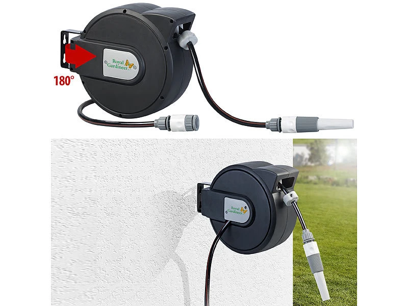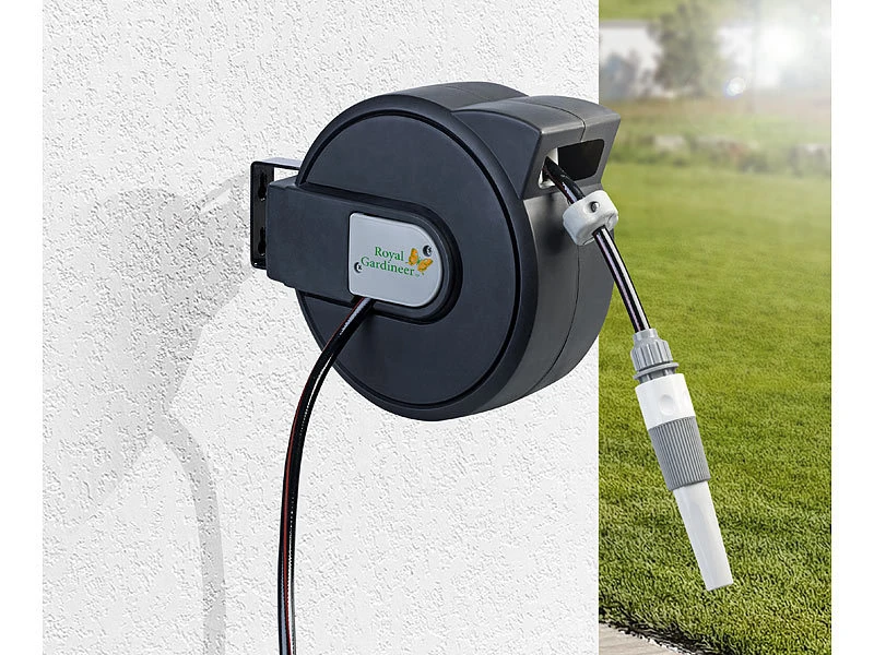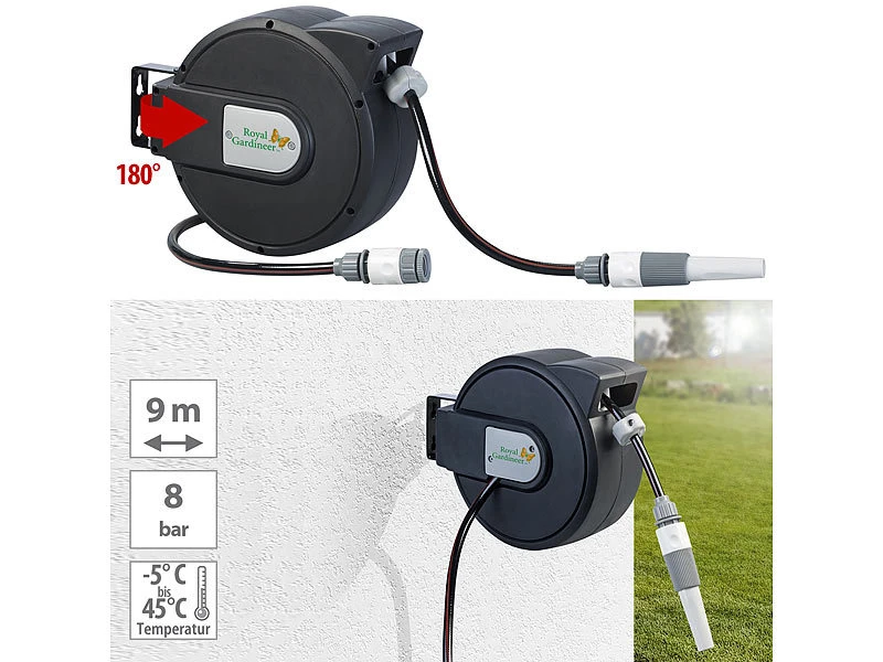 - Integrierter Gartenschlauch: rollt nach Verwendung automatisch auf