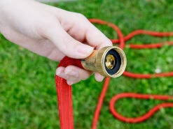 Sie verwenden Ihren Profi-Gartenschlauch sogar für Ihr Gewerbe: Die goldfarbenen Aluminium-Anschlüsse halten tropfsicher am Wasserhahn. Setzen Sie Ihren unverzichtbaren Helfer in Gärtnereien u.v.m. ein.