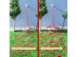 Jetzt wässern Sie auch das entfernteste Garten-Eck: Ihr Gartenschlauch wird bis zu 50 Meter lang, sobald Sie das Wasser aufdrehen! Nach dem GieĂźen zieht er sich wieder auf kompakte 17,5 m zusammen – ideal zum Verstauen.