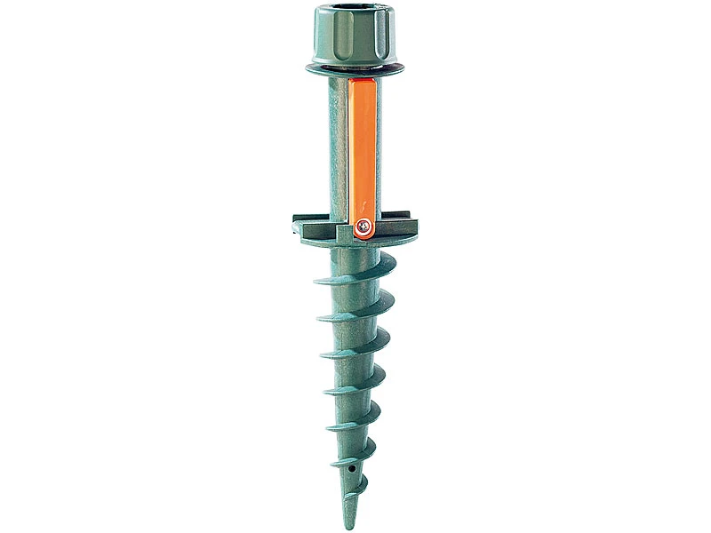 Einfach in den Boden eindrehen: Schon steht Ihr Sonnenschirm kipp- und windfest im Rasen oder in der Erde neben der Terrasse.