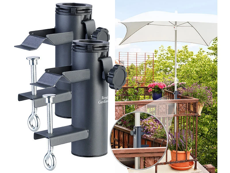 - 2er-Set Universal Stahl-Sonnenschirmhalter für Geländer