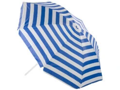 Überall einsetzbar: Der Schirm ist ideal am Strand oder am Badesee. Dank Stab mit spitzem Ende stecken Sie ihn einfach in den Boden. Zu Hause findet der Schattenspender auch in gängigen Schirmständern festen Stand.