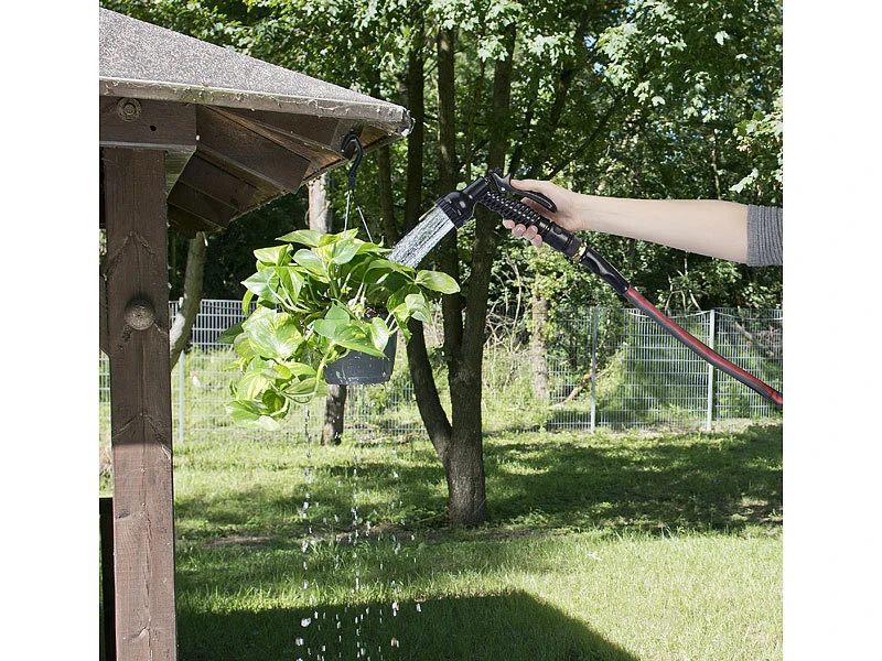 Einfacher Anschluss per Stecksystem: Verbinden Sie den Schlauch mit Ihrem handelsüblichen Schlauch-Anschluss und schon ist er einsatzbereit. Dank Brause mit zwei einstellbaren Strahlarten bewässern Sie selbst empfindliche Pflänzchen schonend sanft.