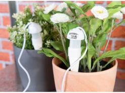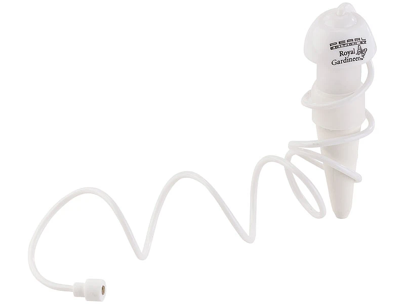 Einfache Anwendung: Stecken Sie die Tonspitze in den Blumentopf und das Schlauchende in ein Gefäß mit Wasser. Die Spitze aus porösem Ton saugt bei trockener Erde Wasser an und gibt es gleichmäßig an Ihre Pflanzen ab.