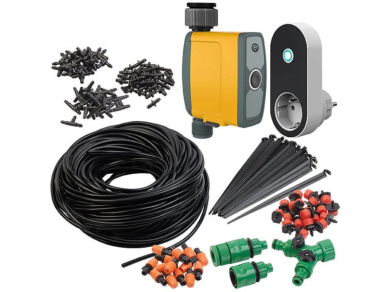 - PVC-Schlauch inklusive Teflonband, Wasserhahn-Anschluss, 2-Wege-Schlauchverzweiger, 2 Schlauch-Schnellverbindungen, 15 Zerstäuber-Spitzen, 25 T-Verbindungsstücke, 15 kleine T-Verbindungsstücke, 14 Spitzen-Verbindungsstücke, 22 Tropfer-Spitzen, 20 Erdspieße, 20 Sprinkler-Spitzen, WLAN-Gateway und Bewässerungs-Ventil BWC-500 mit Adapter und deutscher Anleitung – Bewässerung Gewächshaus – Außerdem relevant oder passend zu: iPad, Blume, Garden, smarte, Balkon, Display, Automat, Spitzer, Erdspieß, Perlschlauch, Rasensprenger, Perlschläuche, Zeitschaltuhr, Gartenschlauch, Outdoor Smartphone, Wireless PC Controller