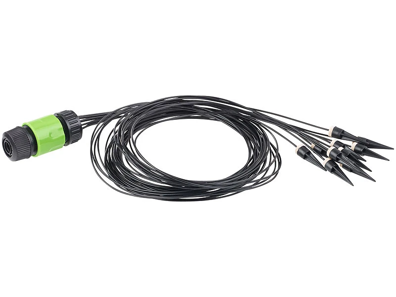 Sie bewässern bis zu 10 Planzen gleichzeitig: Mit einem einzigen Wasser-Anschluss! Einfach die Bewässerungs-Spitzen zu jeder Pflanze stecken, schon versorgen Sie Ihre Lieblinge zielgerichtet mit kostbarem Nass. Auch ideal für ganze Beete.