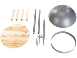 - Schutzdach aus Metall: Futter und Holzteile bleiben sauber und trocken