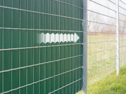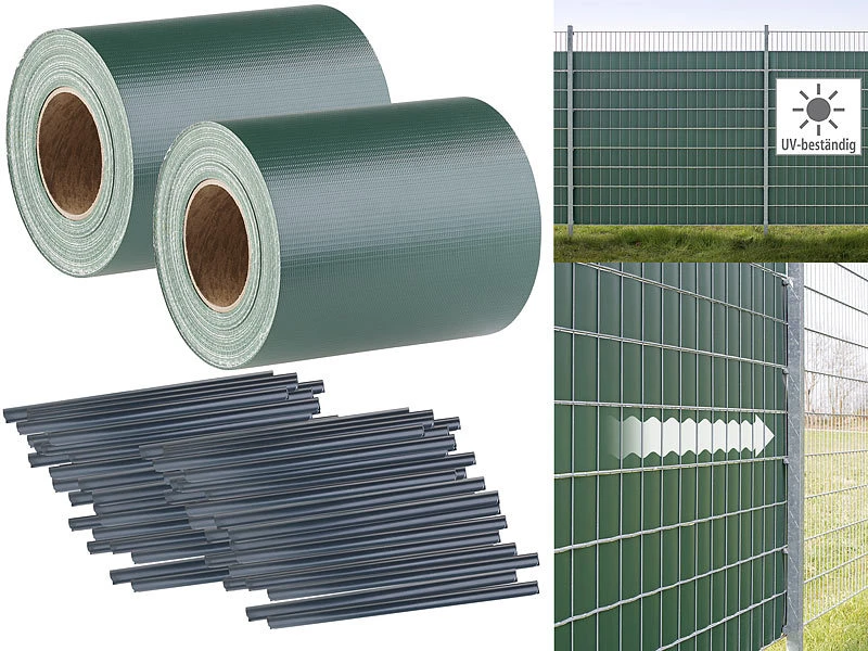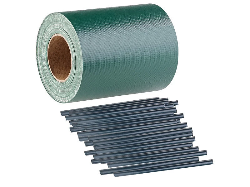 Einfach angebracht: Befestigen Sie die Enden Ihres Sichtschutzes einfach mit den Klemmstreifen an den Metallstäben Ihres Zaunes. So lassen Sie den Werkzeugkoffer im Keller.