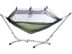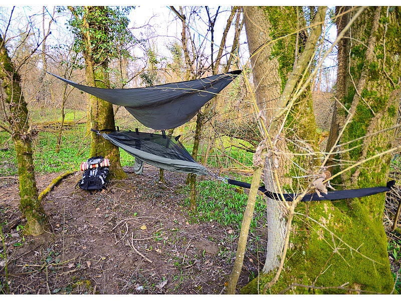 Toll auch als Zeltersatz: Sie sind unterwegs optimal vor Kriechtieren und Stechmücken geschützt. Die Hängematte wiegt nur 570 g und Gedanken über den Zeltaufbau müssen Sie sich auch nicht mehr machen.